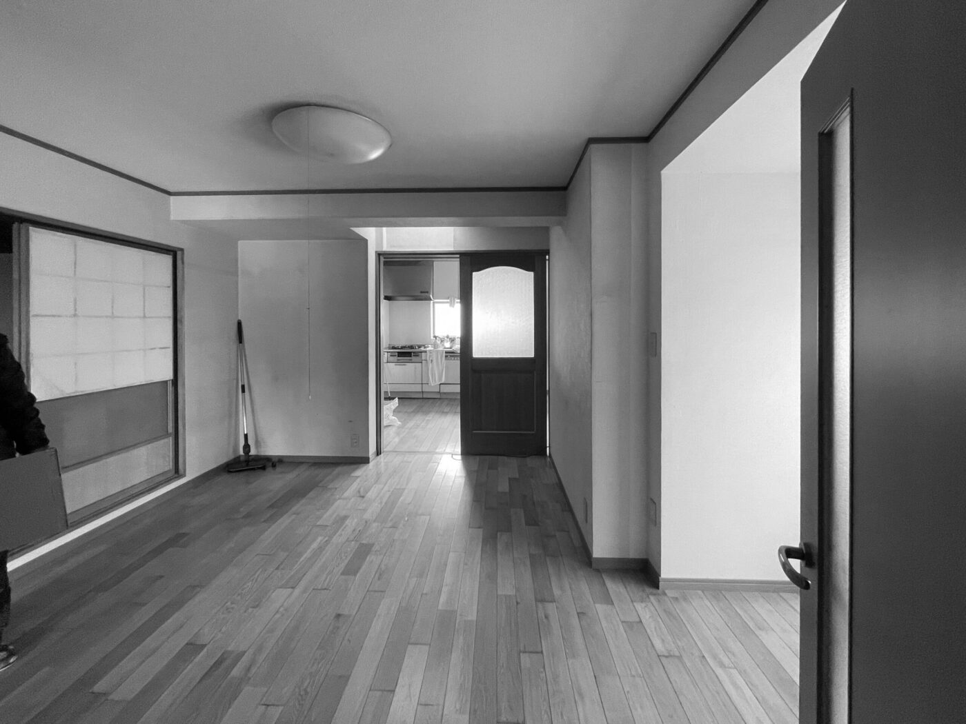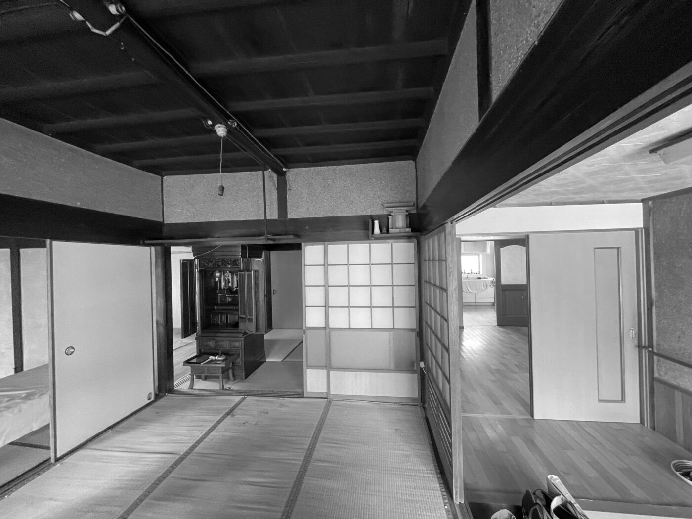 広がる大空間:壁を抜き、LDKと和室が一体に。