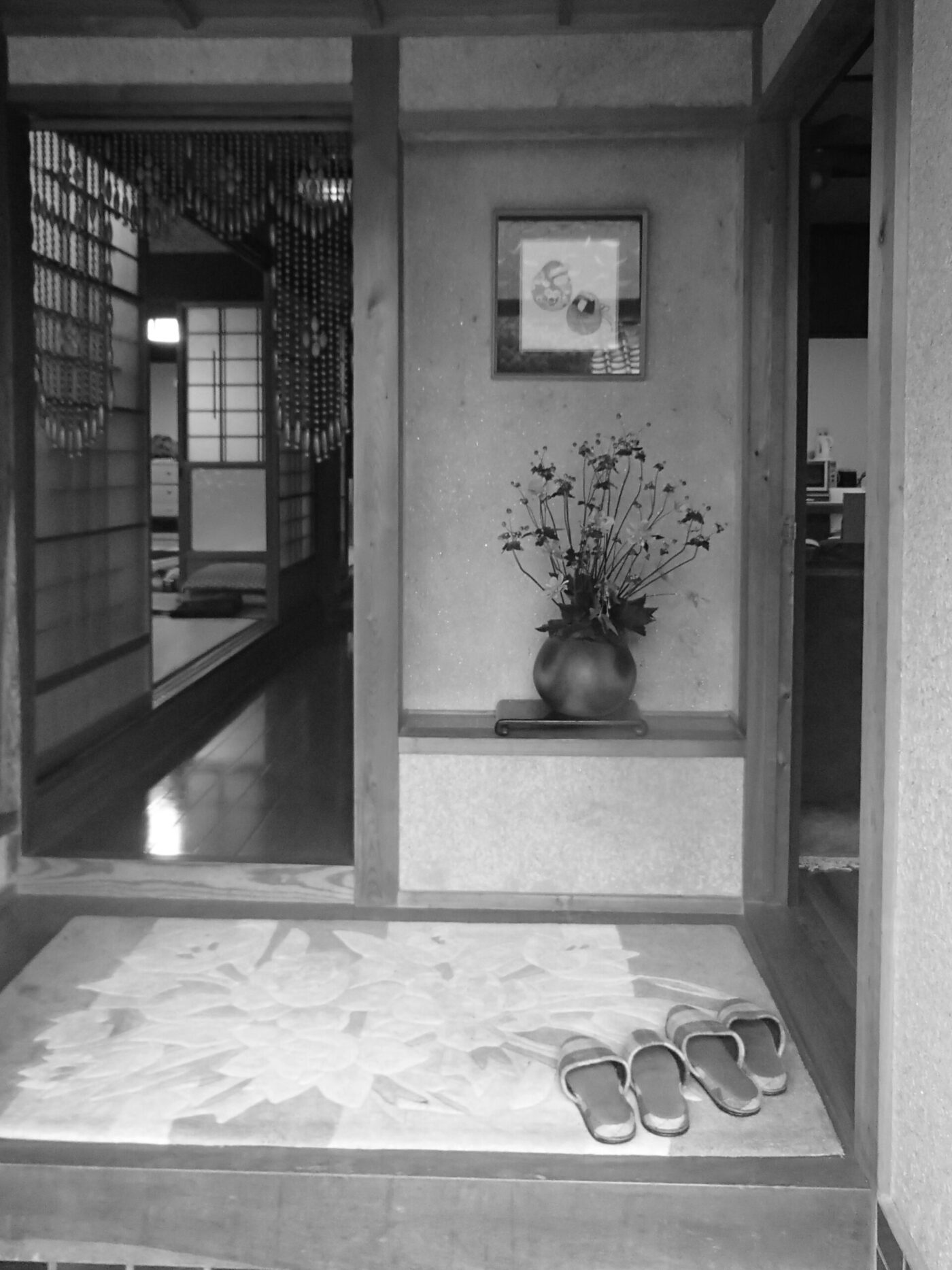 広がりある玄関:間口を拡張し来客を迎える空間に。
