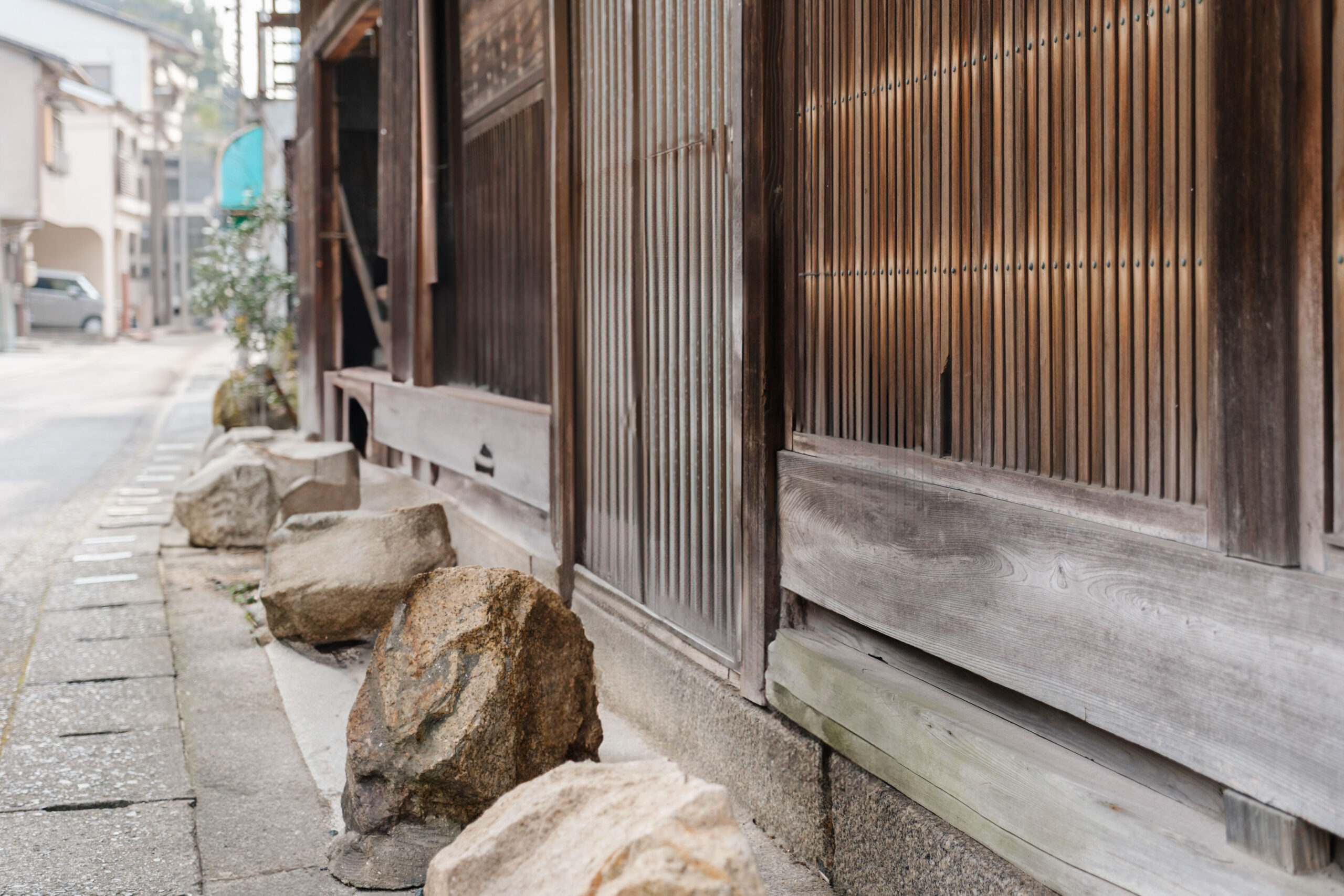 昭和25年以前に建てられた「伝統構法」の古民家は、玉石や延石の上に柱を立てる「石場建て」の工法で、木と木を組み上げて地震の力をしなやかに受け流す「柔構造」が特徴です。