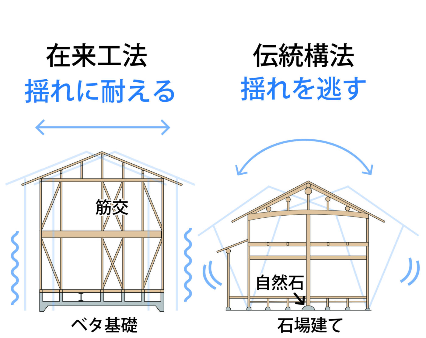 在来工法の耐震は、「揺れに耐える」考え方が基本です。